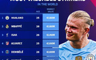 德转列中锋身价榜:哈兰德1.8亿欧居首,姆巴佩第二